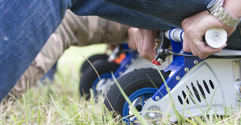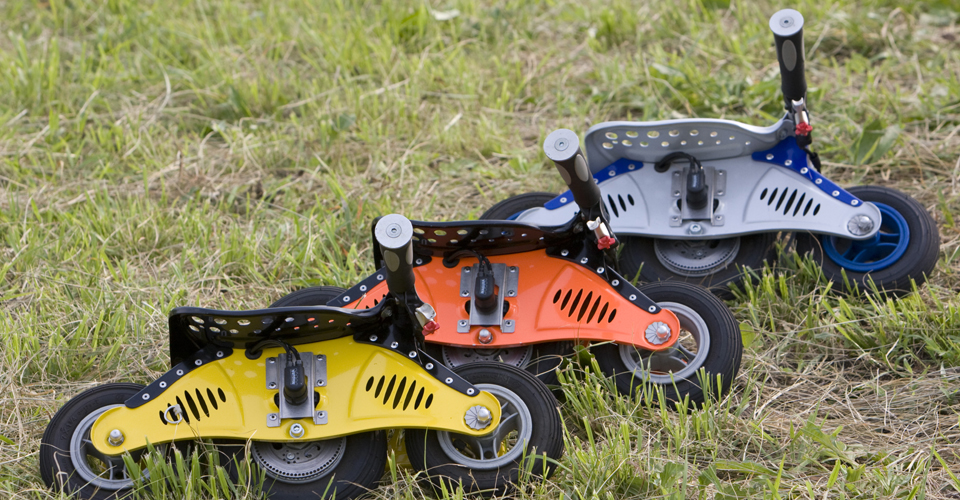 Bockerl(ポッカール)は、ドイツで開発された今までにない新感覚スポーツギアです。50mの斜面を颯爽と駆け降りる、そのスピードは時速 30km!体感速度はそれ以上です!3つのインラインタイヤがあらゆる地形に対応するため、安全で小学生から大人までで楽しめます。
