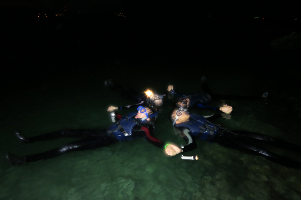 波の音しか聞こえない夜の静寂な海に抱かれて、満天の星空を仰ぎ、夜光虫の発する神秘的な光に心癒されるナイトスノーケリング。