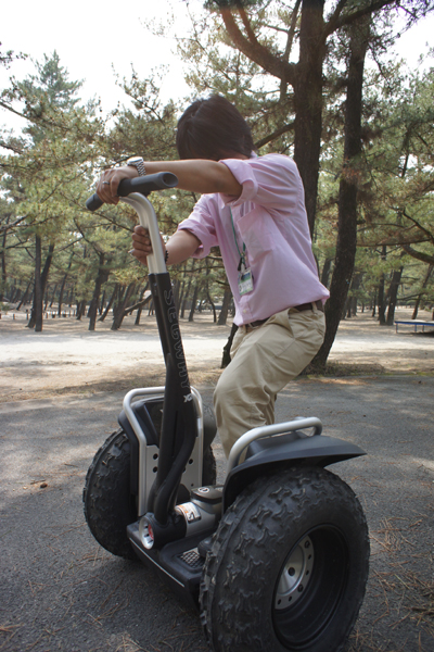 セグウェイとは、アクセルやブレーキ操作なしに、重心移動によってその動きを制御する、優れたインターフェースを有している乗物です。